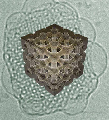 Photo: 3D reconstruction of a cubosome obtained with CET. Scale bar: 40 nm ©Davide Demurtas/EPFL